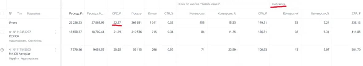 - Для аналитики лично я использую ОткудаПодпискиБот , платный тариф стоит всего 990 руб/мес, зато позволяет прокидывать оффлайн-конверсии (в Метрике создается цель на Подписку) и обучать рекламу на них, а не просто на переходы или клики по кнопке